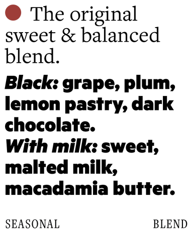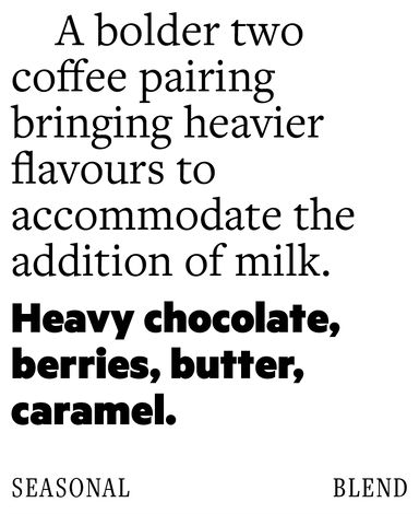 Our flagship espresso blend combining of our favourite in-season coffees put together to create sweet, balanced espresso. Served black, it is vibra...